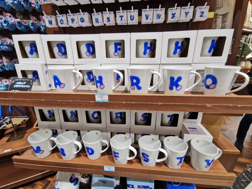 ドラ文字のマグカップやキーホルダーなど、名前の頭文字を選べるドラ文字シリーズはコレクション性が高いです。