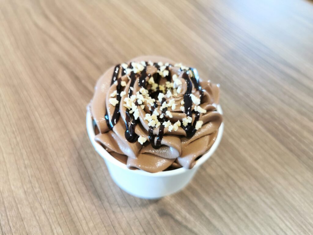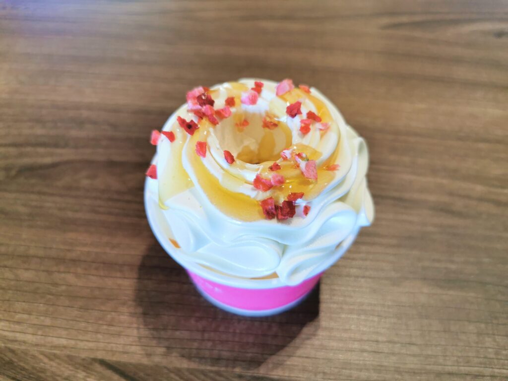ソフトクリームのバニラは、まるで花のような見た目で、ドライストロベリーがアクセントになって、とても鮮やかです。