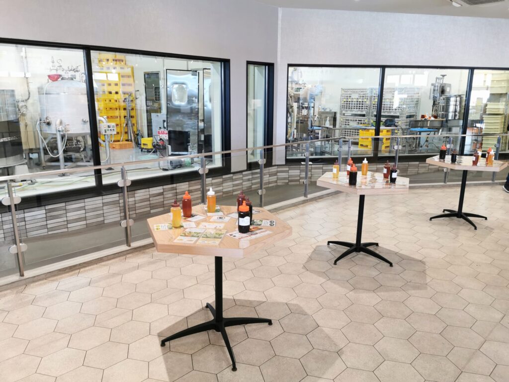 受け取ったら、工房内や工場見学場の飲食スペースか外のテラス席で座って食べる事ができます。