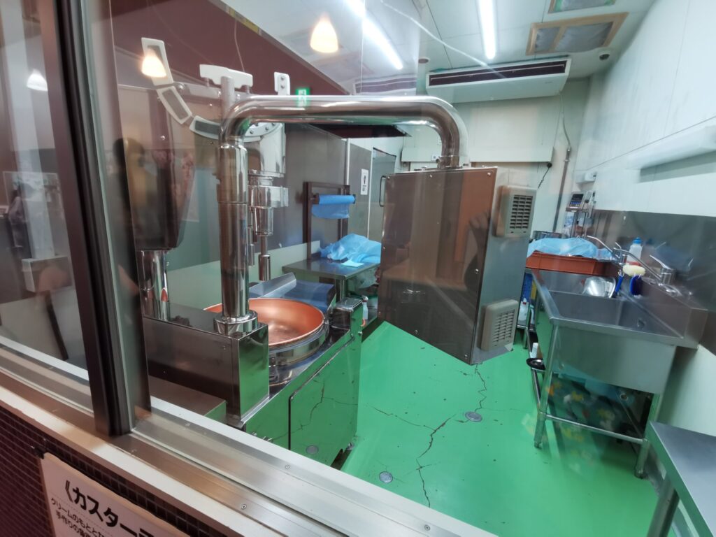 まずは、パンに入れるカスタードの製造工程です。この日は作り終わっていて、機械だけが置いてありました。
