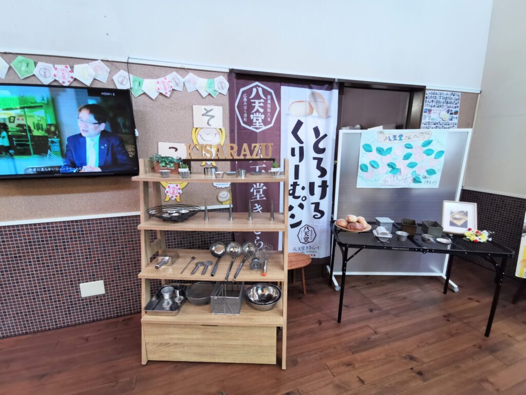 隣の敷地にある八天堂カフェリエきさらづでは、有料ですが、パン作り体験を楽しむ事もできます。