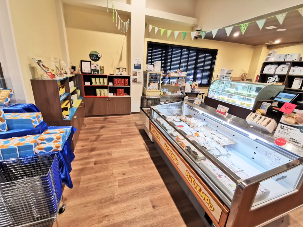 八天堂の人気のクリームパンやその他の商品が販売されていますが、それほど大きな売店ではありません。