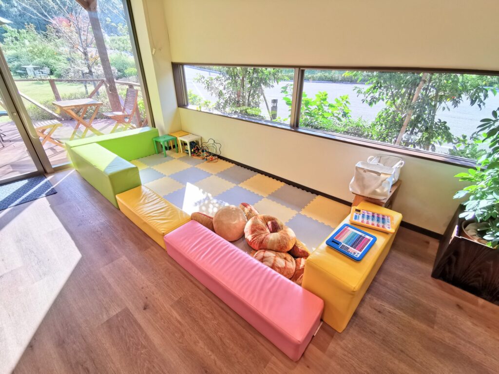 テーブルの横にはキッズスペースもあり、子供が遊ぶのを見ながら、ランチやお茶ができます。