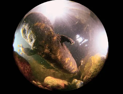 オオサンショウウオが頭上のスクリーンを通り過ぎるシーンではまるで水中にいるような気分でした。
