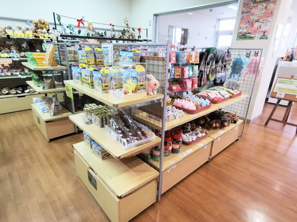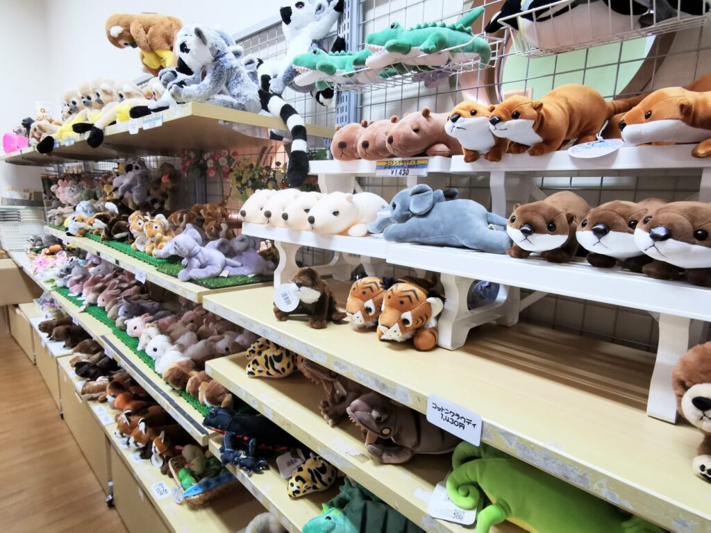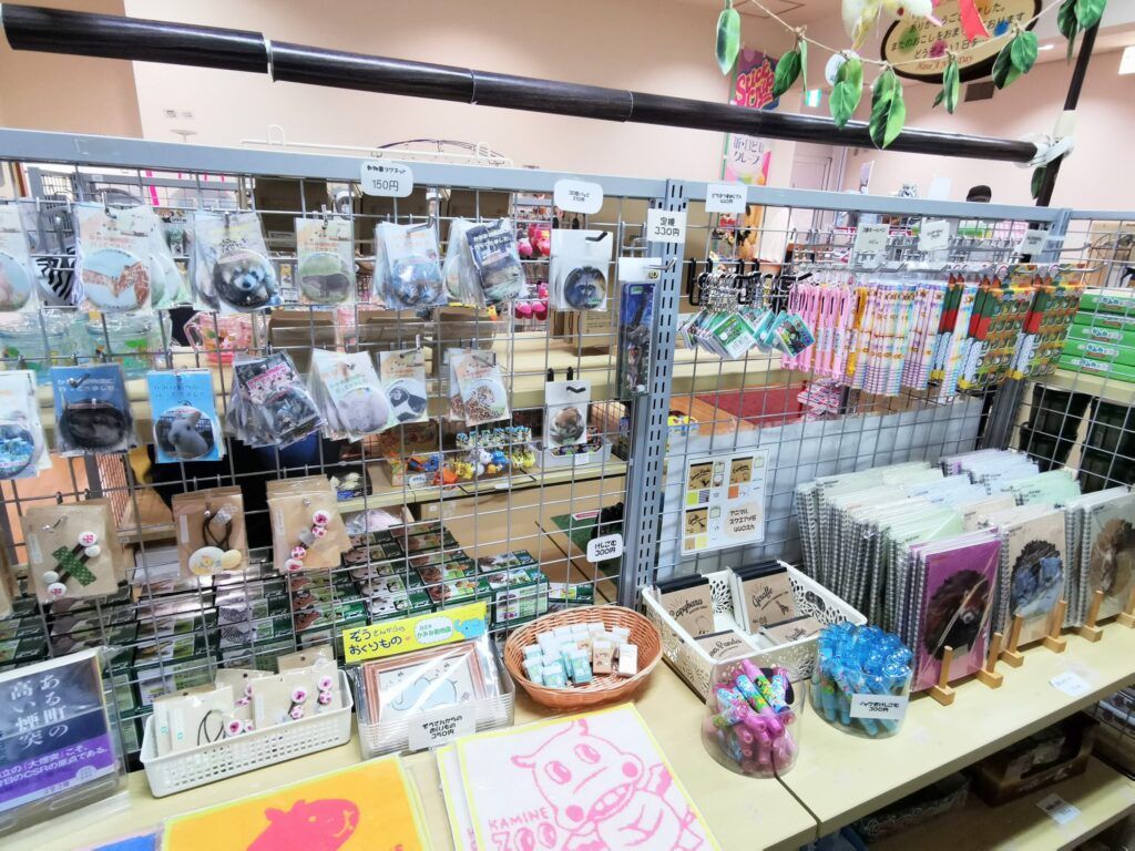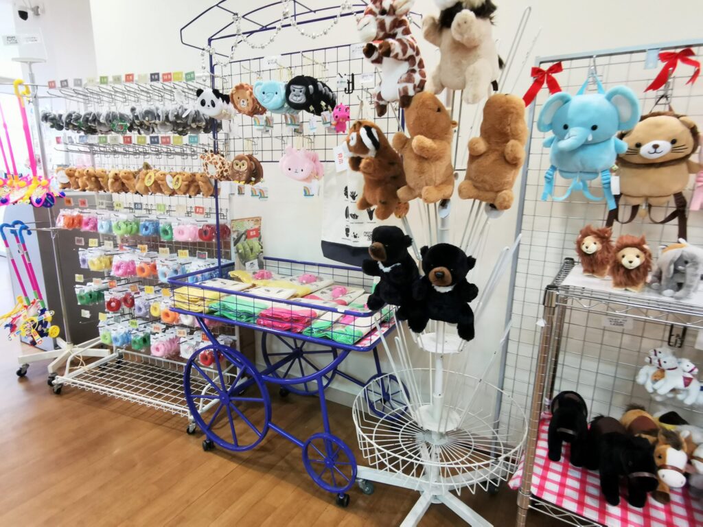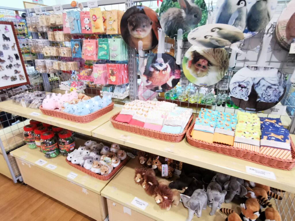 小さなスペースではありますが、動物デザインの日用品やぬいぐるみなどのお土産がそろっています。