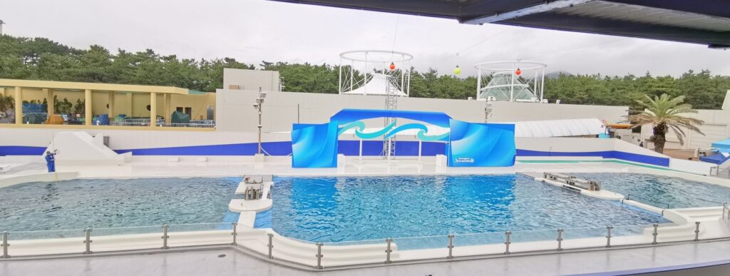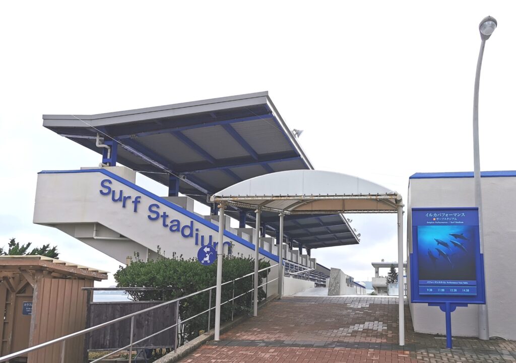 鴨川シーワールドのイルカショーは、サーフスタジアムで開催されています。