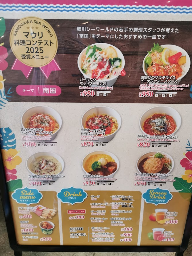 鴨川シーワールド館内には、レストランから屋台スタンドまで、いろいろなランチ場所があります。