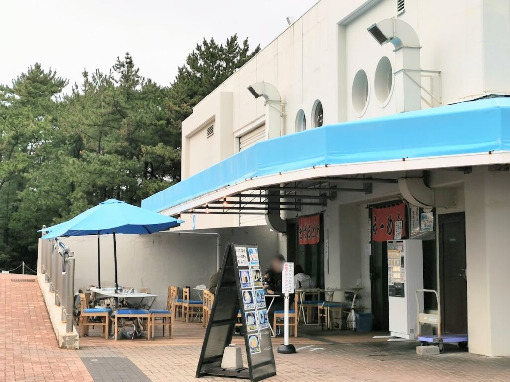 うどん、そば、ラーメンを目の前のテラス席か、海沿いのテラス席でたべる事ができます。