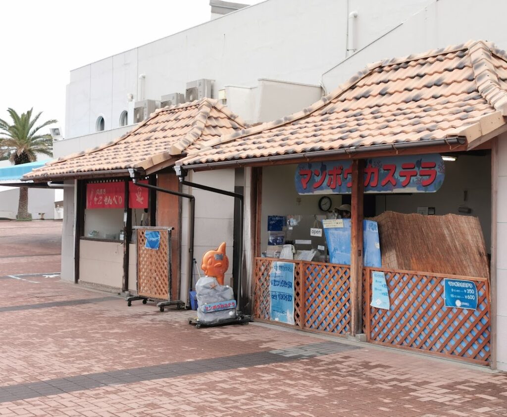 小腹が空いた時に食べられるたこせんべいとマンボウカステラを売っている屋台です。