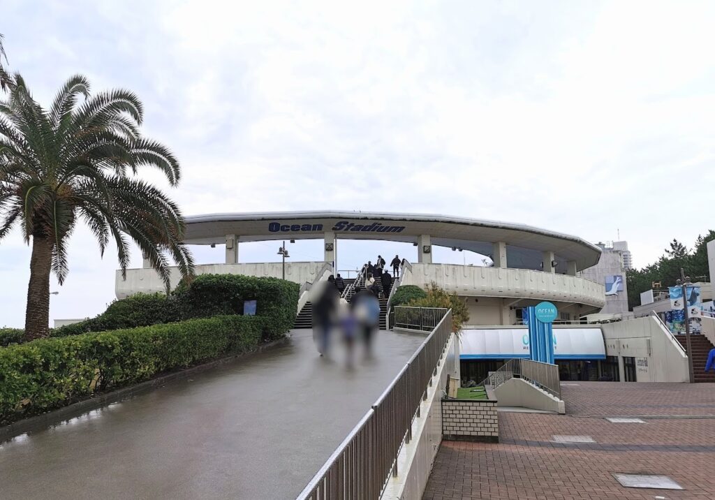 オーシャンスタジアムの入口付近には屋台スタンドがあり、食べ物をテイクアウトできます。